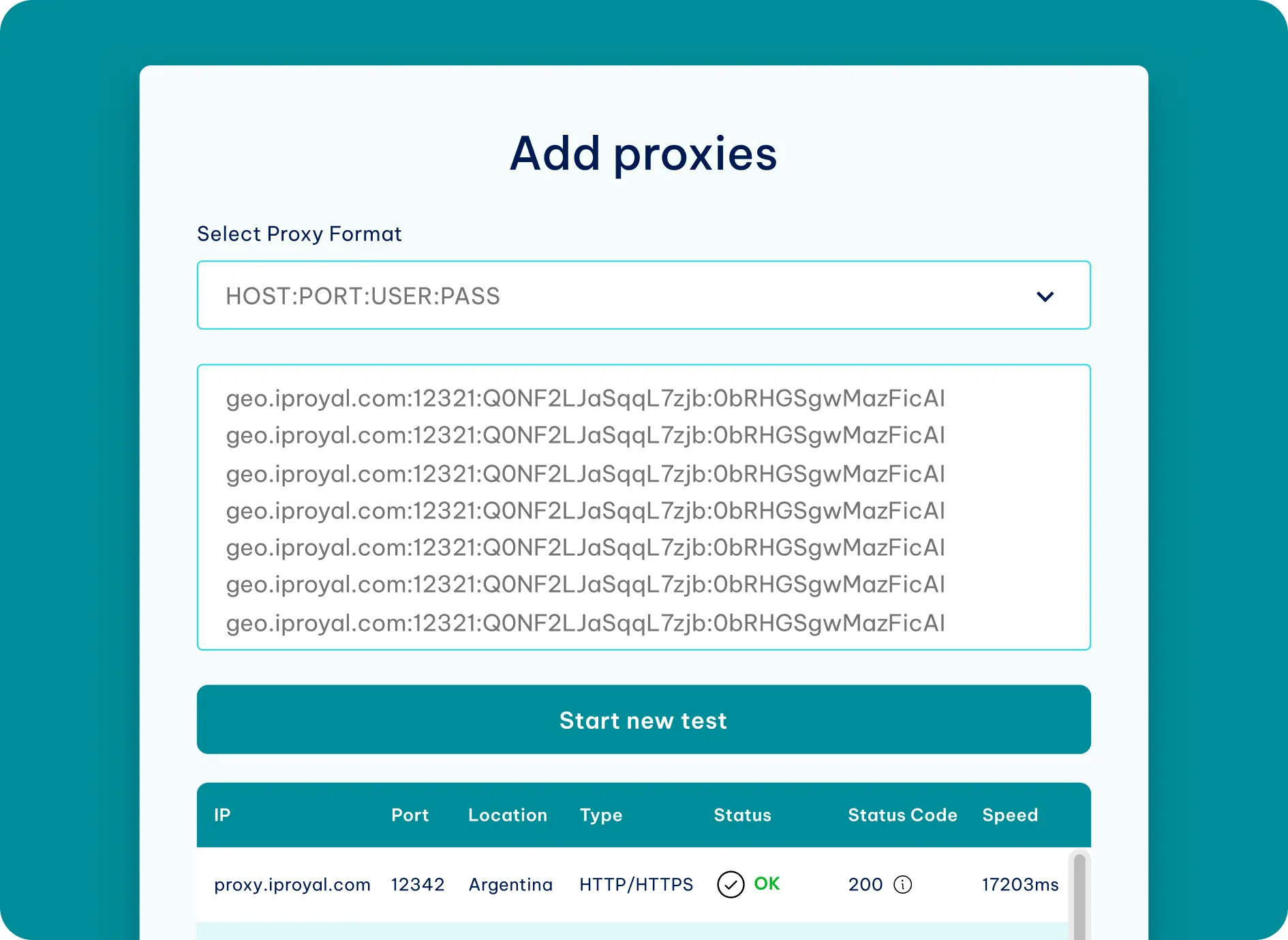 We’ve designed our proxy checker to be easy to use because we want to ensure a seamless proxy experience for all users. You can add an entire proxy list and test the proxy servers all at once.