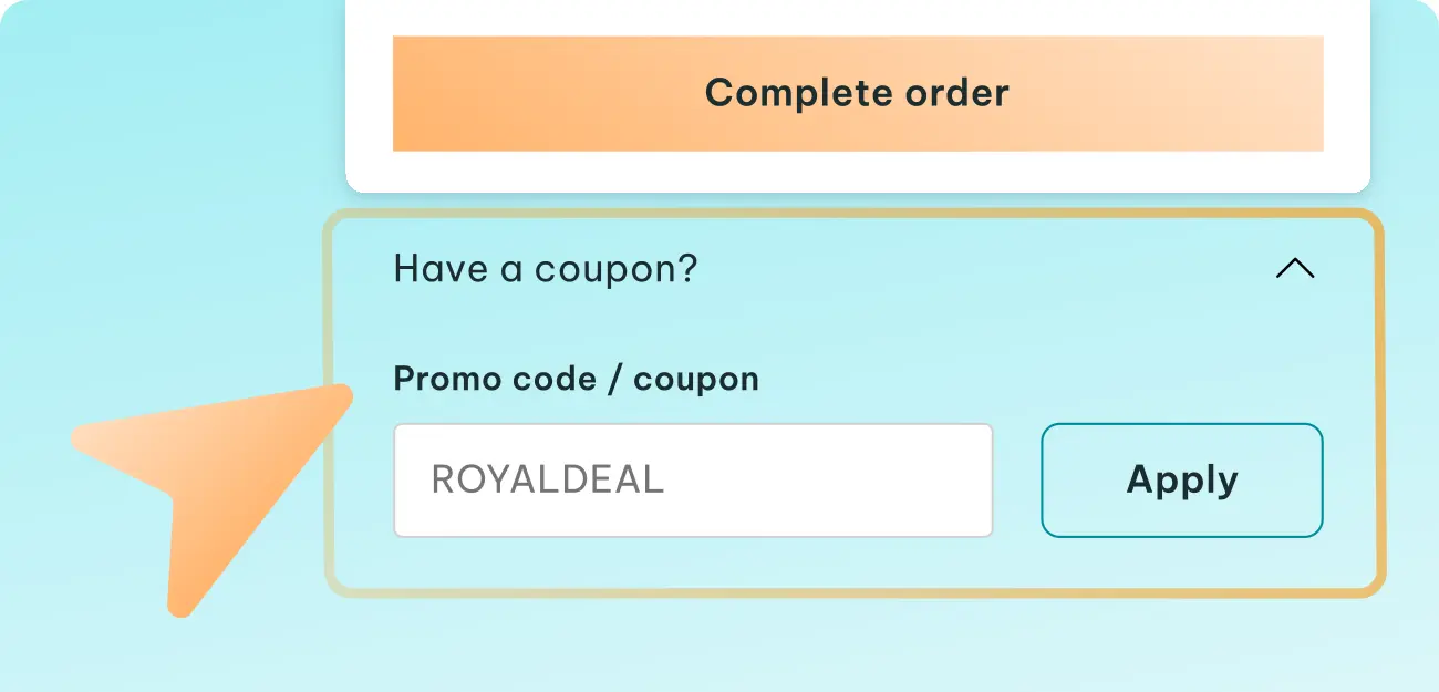 Enter your discount code in the "Coupon" field and click "Apply" to get your deal!